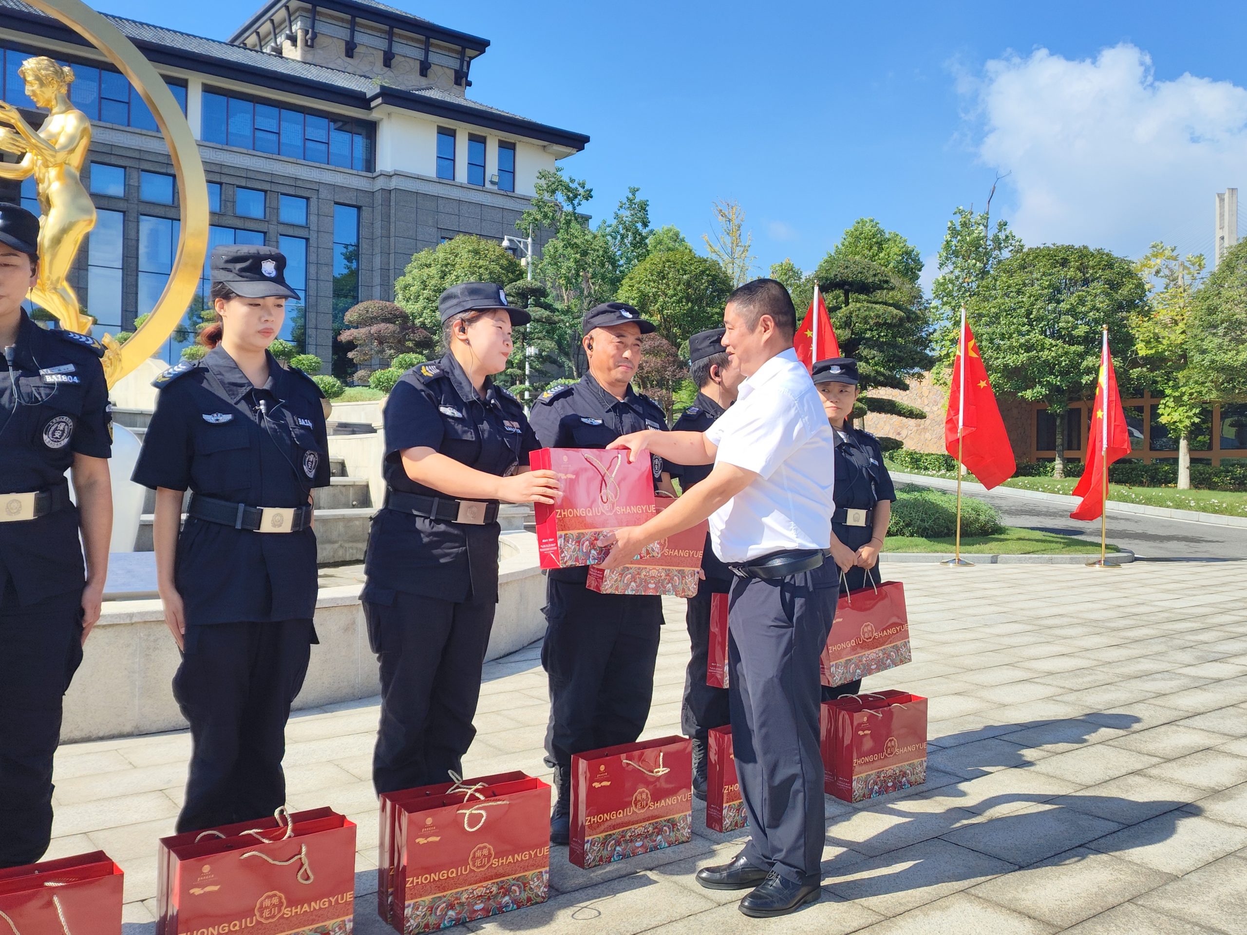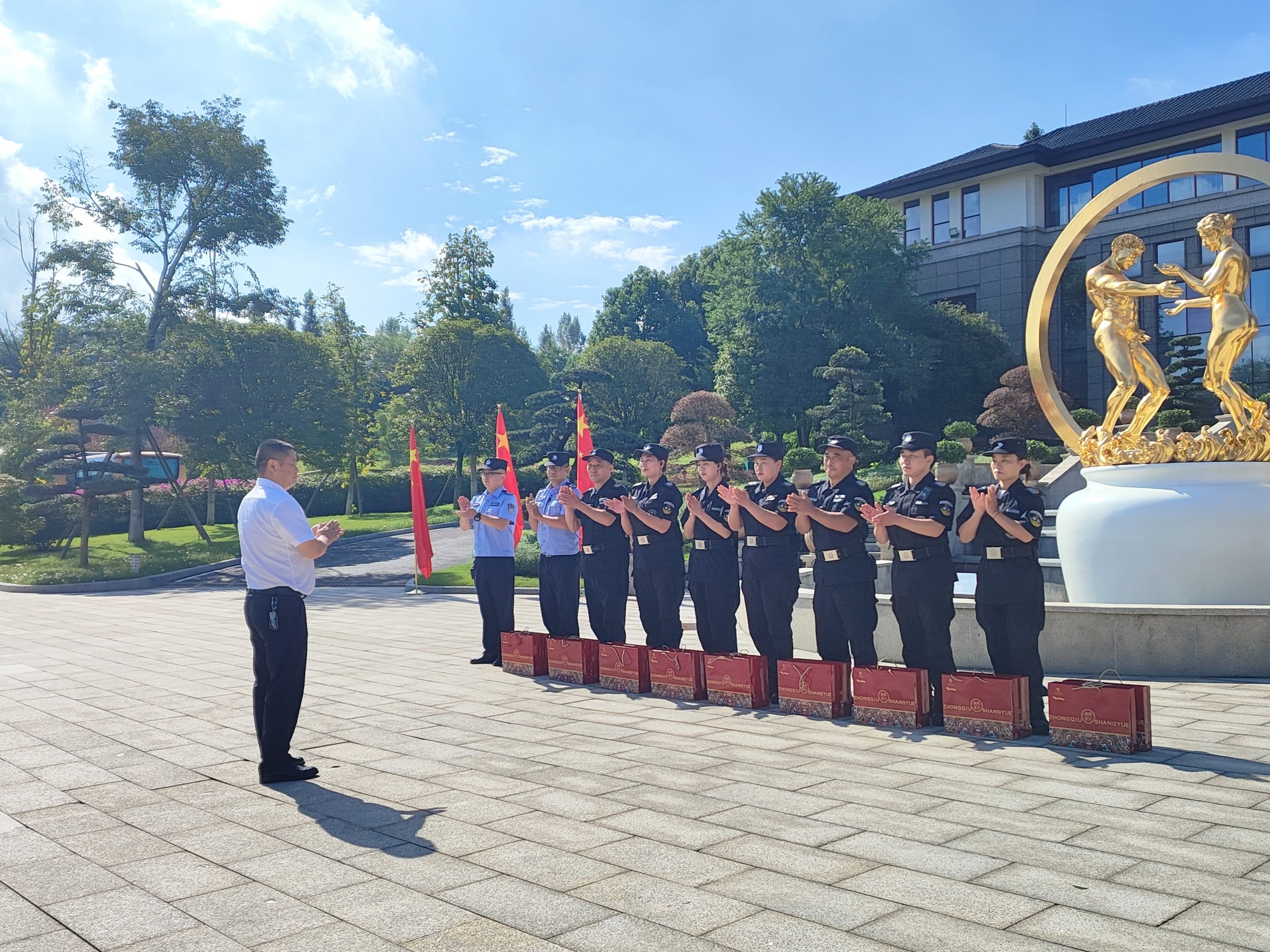 秋风送爽,丹桂飘香。在中秋、国庆双节即将到来之际,为弘扬中华优秀传统文化,并感谢全体振川保安职工长期以来的辛勤付出与默默坚守,泸州市振川保安服务有限公司9月中旬,开展2025年度中秋慰问活动。公司领导班子心系一线,为坚守在一线的保安员送上节日的诚挚问候与美好祝福。 慰问现场,公司领导将满载心意与祝福的节日礼盒逐一送到员工手中,大家喜悦之情溢于言表。每一份福利,都凝聚着公司对员工辛勤努力的认可与牵挂。礼盒中香甜软糯的月饼,不仅传递着传统节日的温馨仪式感,更承载着公司对大家恪尽职守、爱岗敬业的深深敬意。