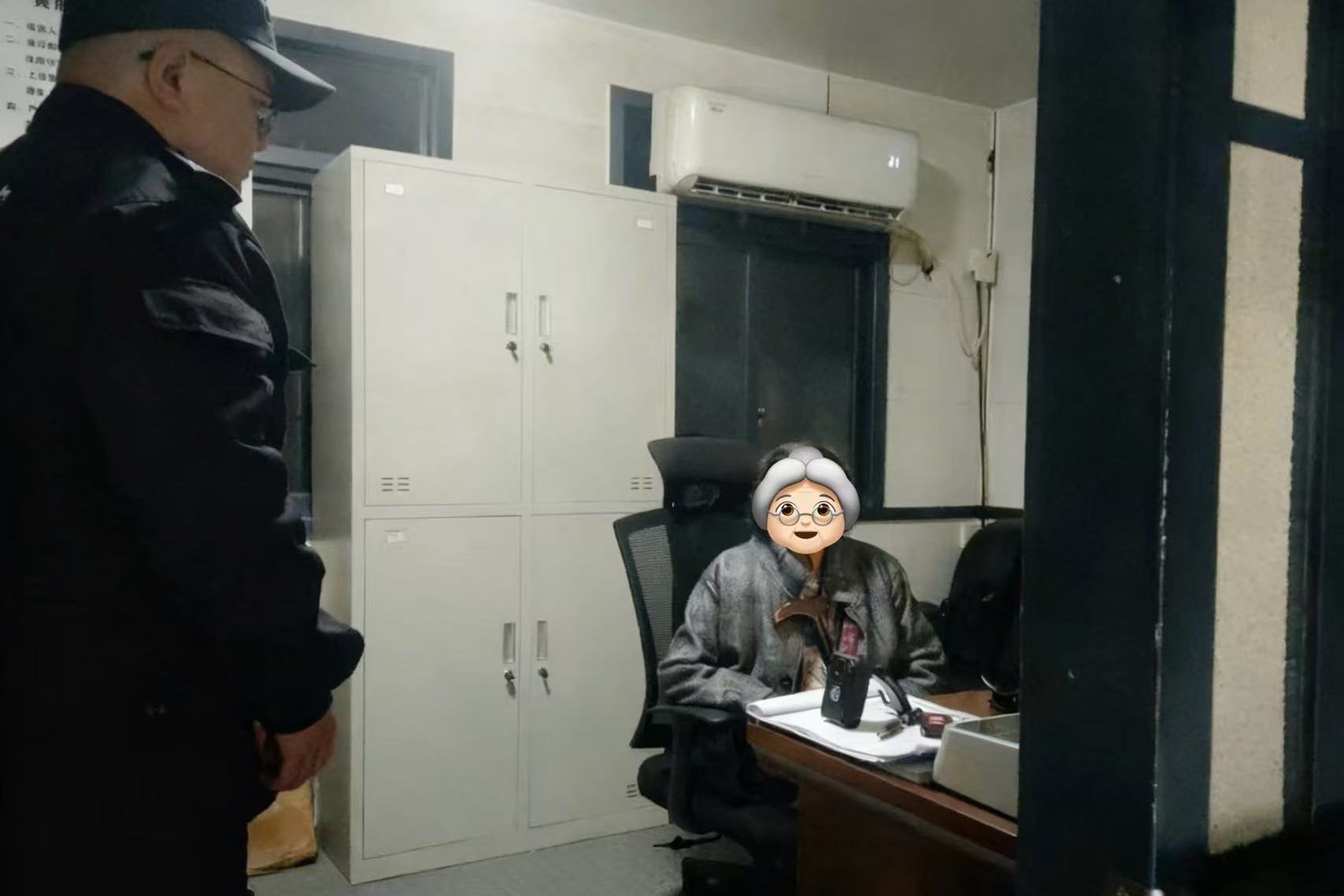 2025年11月12日凌晨3时15分,中队值班班长韦宇在巡查监控时发现智能包装6号门门岗外有一名陌生老人。经初步询问与观察,判断该老人可能为走失人员,且患有老年痴呆。
